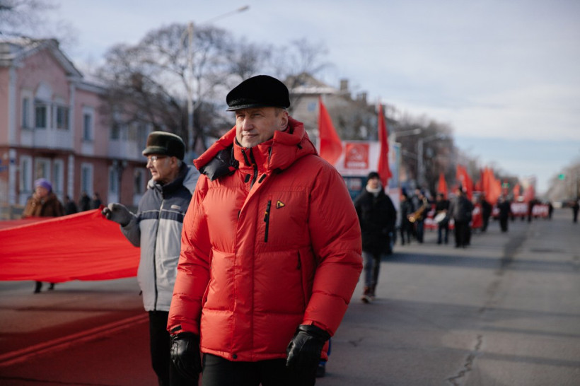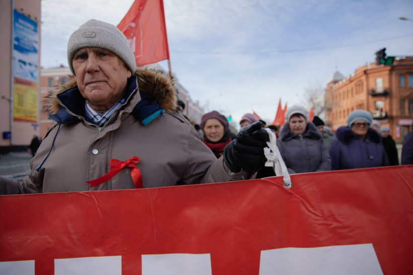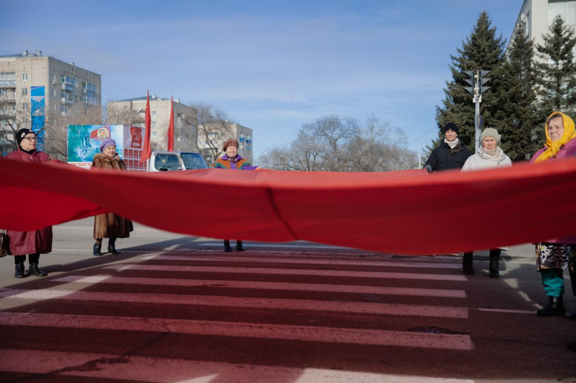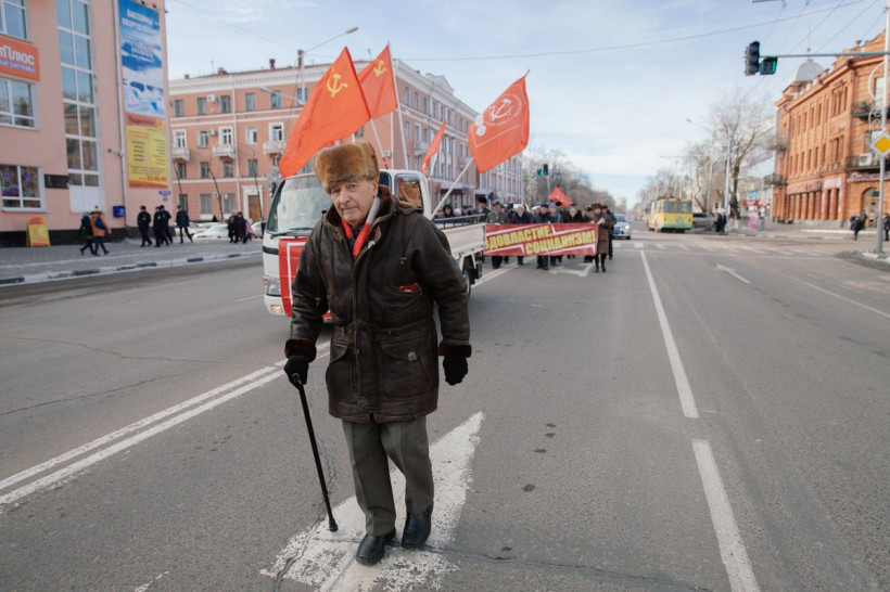 В Благовещенске прошло шествие в честь 97-й годовщины Великой Октябрьской социалистической революции. В нем приняли участие члены амурского отделения коммунистической партии и жители города. Колонна с красными флагами и транспарантами прошла по улице Ленина от площади Победы до центральной площади города. Затем здесь состоялся праздничный митинг. До 1991 года день 7 Ноября был государственным праздником, который отмечали обязательными демонстрациями трудящихся, проходившими в каждом городе страны. В России эта дата не является официальным праздником, но в 2005 году 7 Ноября вошло в перечень памятных дат. Вместе с благовещенцами по улице прошествовал и фотокорреспондент АП Сергей Лазовский.