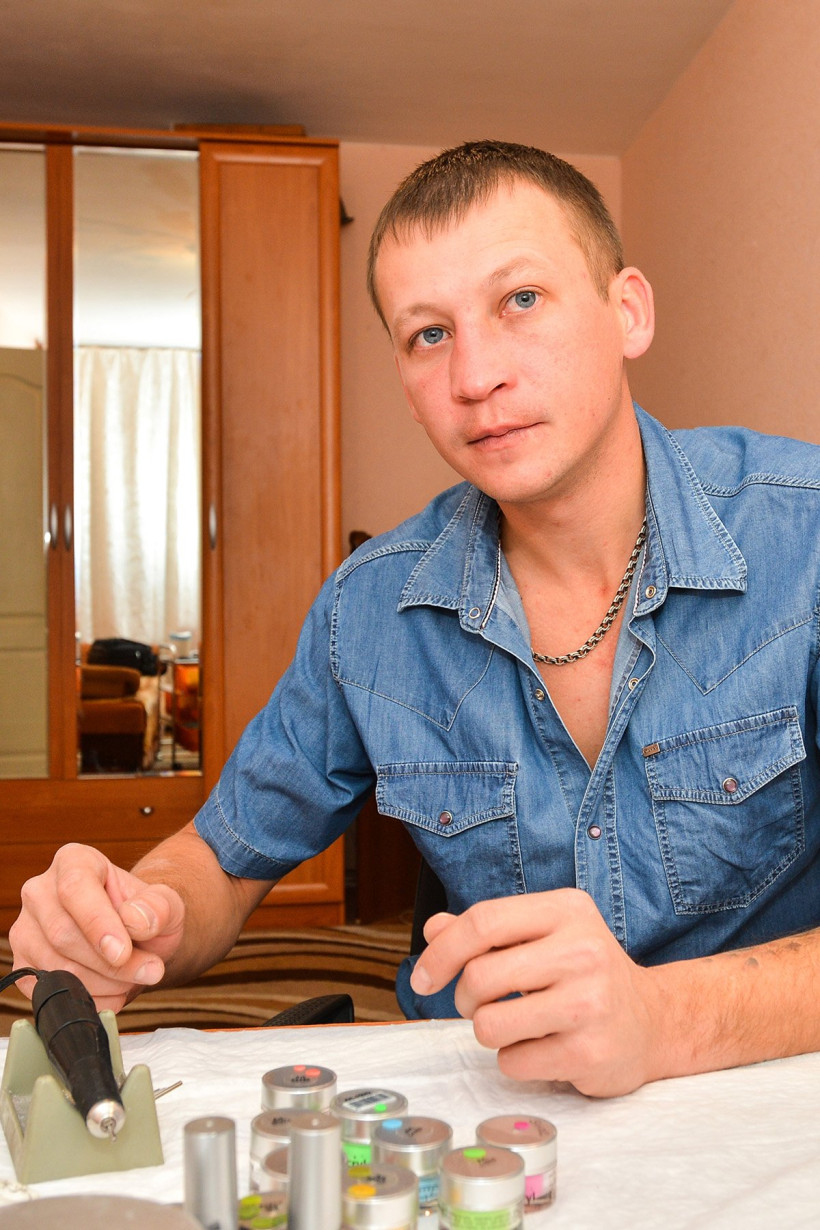 По его словам, в работе на дому почти нет минусов. «Уголок нейл-дизайнера» занимает совсем немного места: стол и тумбочку с ящиками. Не отвлекаться от дела на домашние заботы Юрию помогает свойственная всем мужчинам сосредоточенность.