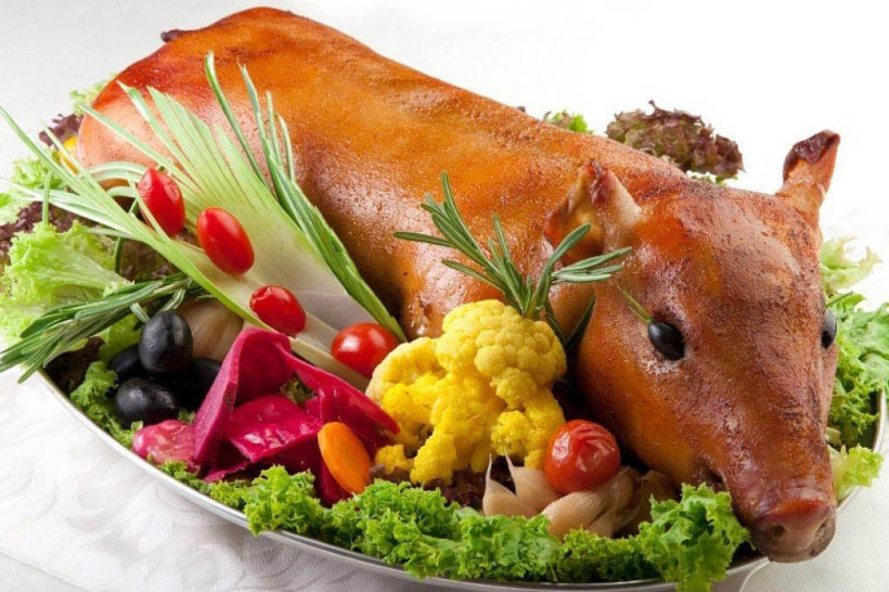 Молочный поросенок, запеченный на вертеле и украшенный овощами. У этого блюда есть свои постоянные поклонники-гурманы. Зажаренные до аппетитной хрустящей корочки, с яблоком в зубах, поросята были главным угощением на царском столе. В Благовещенске заказать такое угощение своим гостям решится не каждый именинник. Если выбираете такое блюдо, обговаривайте его приготовление заранее. Кстати, за каждый килограмм поросенка к ценнику прибавляется 1 500 рублей.