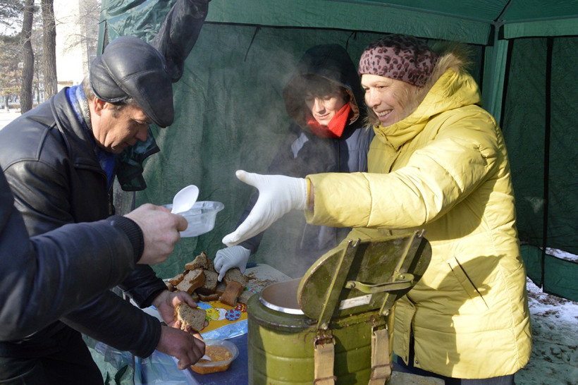 — Очень холодно, поэтому есть смысл позаботиться о профилактике простудных заболеваний, — делится заместитель председателя общественной организации «ПокровЪ» Ольга Аникина. — Активнее за добавкой подходим, товарищи!