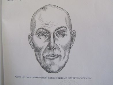 Приметы: мужчина европеоидной расы, вероятный возраст 40—50 лет. На теле были мужская сорочка с серо-черно-белым рисунком из геометрических фигур, трико спортивное синтетическое синего цвета, утепленные спортивные брюки синтетические черного цвета. Приметы: в лобной кости справа имеется дефект, образовавшийся предположительно в результате медицинской манипуляции — трепанации черепа.
