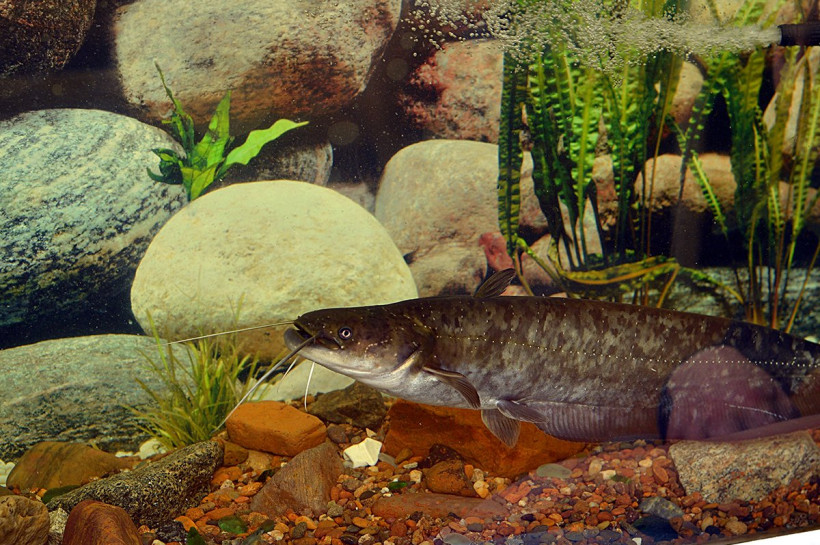 Хищная рыба не доставляет хлопот в отличие от декоративных меченосцев и гольянов, что плавают в соседнем аквариуме. Мальков речной рыбы привез семье знакомый с зимней рыбалки для еды сому, который с удовольствием принимает это угощение.