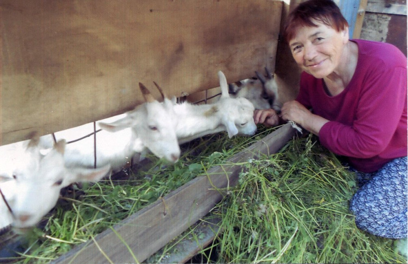 «Их было шестеро козлят (почти как в сказке), все родились в марте прошлого года. И вдруг в августе — наводнение. Хлев с козлятками и всю усадьбу стала заливать вода. Держать живность стало негде. С трудом удалось уговорить членов семьи оставить молоденьких козочек в живых. Нашлись люди (семья Прохоровых), которые живут в сопках, они приняли нас вместе со всей живностью. В гостях мы пробыли 1,5 месяца. Теперь молодые козочки подросли и доятся».