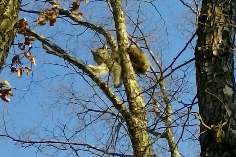 — Все сотрудники побежали смотреть на это чудо, — рассказал АП Григорий, очевидец событий. — Я успел сделать несколько фотографий и записать два видео. А чтобы не сказали, что это был фотомонтаж, для сравнения и достоверности обхватил руками дерево, на котором сидела рысь.