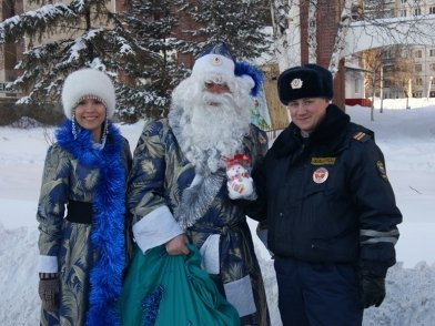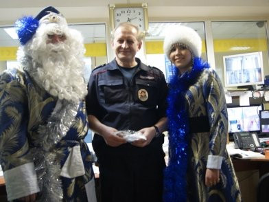 Не остались без внимания Деда Мороза и сами сотрудники органов внутренних дел и члены их семей. Главный новогодний персонаж побывал в гостях у многодетных семей полицейских, поздравил с праздником, поводил вокруг елки хоровод и, конечно, подарил подарки. А вот самих стражей правопорядка Дед Мороз и Снегурочка поздравляли на их рабочих местах, ведь большинство полицейских встречали праздник на боевом посту.