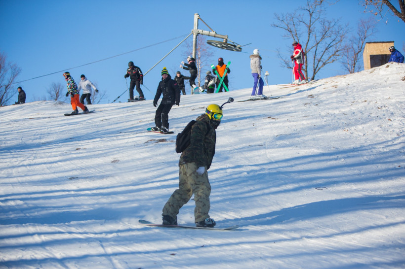 Семьями, с друзьями или по одиночке, но обязательно в спортивной амуниции — именно так начался новый год для тех амурчан, которые не хотели проводить все выходные на диване с оливье, а решились получить максимум ощущений от зимнего спорта. Только по предварительным подсчетам, за новогодние каникулы горнолыжный склон «Снежинка» посетили более 15 тысяч человек: это любители тюбингов, горных лыж и сноуборда. Как завершались ставшие уже традиционными для многих катания на склонах, смотрите в фоторепортаже Игоря Агеенко.