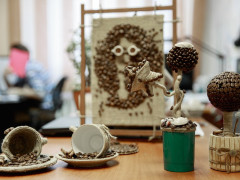 Ароматные кофейные деревья, картины, подставки для кружек и другие поделки из зерен кофе все чаще встречаются в интерьерах современных офисов и квартир. Необычный декор, источающий приятный запах любимого многими напитка, становится настоящей изюминкой помещения. «Если сделать из кофейных зерен подставку под горячее, то каждый раз, когда на нее будет ставиться кружка, по комнате начнет разноситься аромат кофе», — делится секретом благовещенская мастерица Оксана Полухина. Между тем на пике популярности сейчас декоративные кофейные деревья, которые в народе называют «топиарии». Сделать маленькое ароматное деревце можно своими руками, за несколько простых шагов.