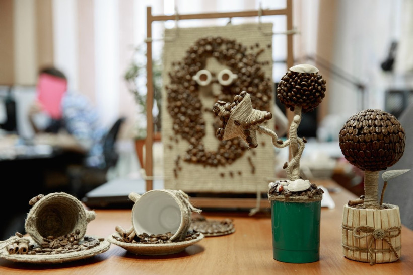 Ароматные кофейные деревья, картины, подставки для кружек и другие поделки из зерен кофе все чаще встречаются в интерьерах современных офисов и квартир. Необычный декор, источающий приятный запах любимого многими напитка, становится настоящей изюминкой помещения. «Если сделать из кофейных зерен подставку под горячее, то каждый раз, когда на нее будет ставиться кружка, по комнате начнет разноситься аромат кофе», — делится секретом благовещенская мастерица Оксана Полухина. Между тем на пике популярности сейчас декоративные кофейные деревья, которые в народе называют «топиарии». Сделать маленькое ароматное деревце можно своими руками, за несколько простых шагов.
