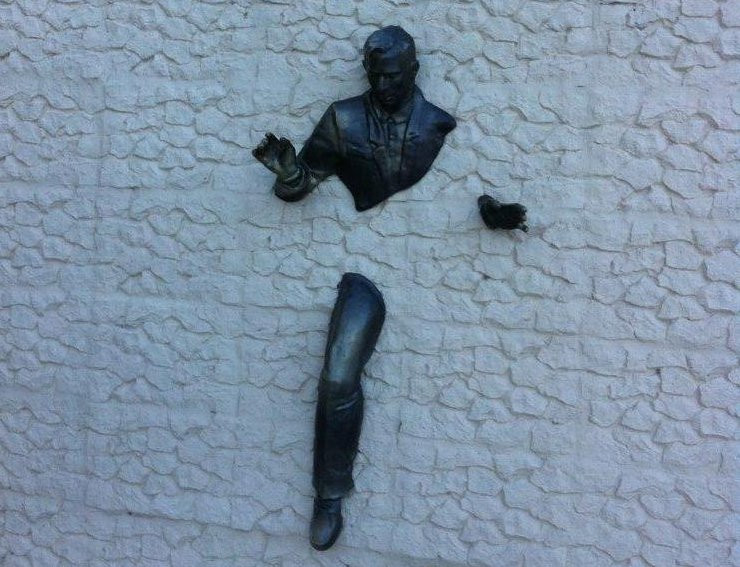 На «Мухинке» появилась скульптура проходящего сквозь стену человека