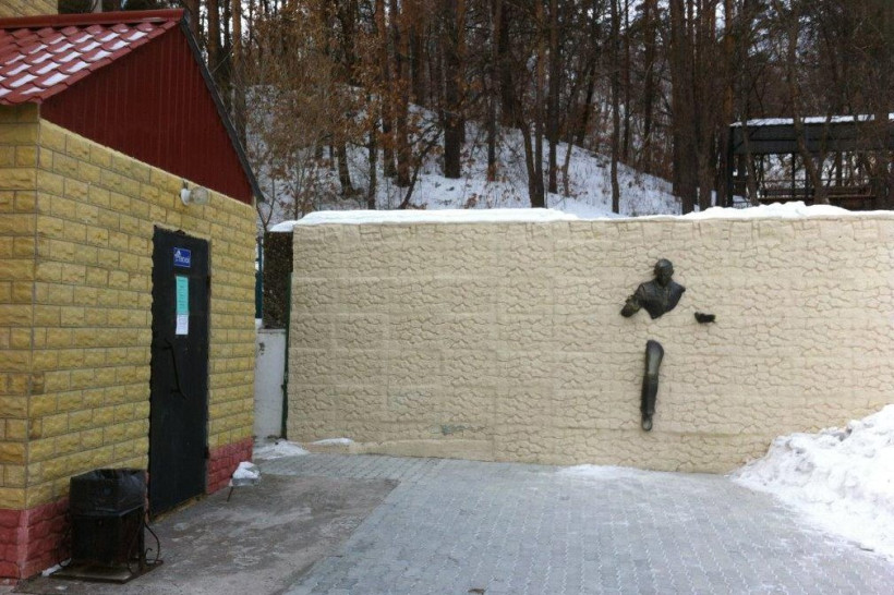 Скульптура человека, проходящего сквозь стену, появилась 4 февраля на турбазе «Мухинка». Необычную двухметровую фигуру из пластика установили на каменной стене рядом с баром «Лесной».
