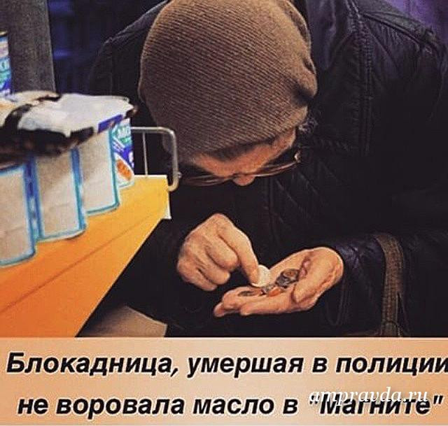 Пользователи соцсетей призывают не ходить в магазин, в котором пенсионерку обвинили в краже маслаСлучай в Ленинградской области, когда 81-летняя старушка-блокадница скончалась в полицейском участке, куда ее доставили по подозрению в краже масла, всколыхнул всю Россию, и разделила на два лагеря: за и против.