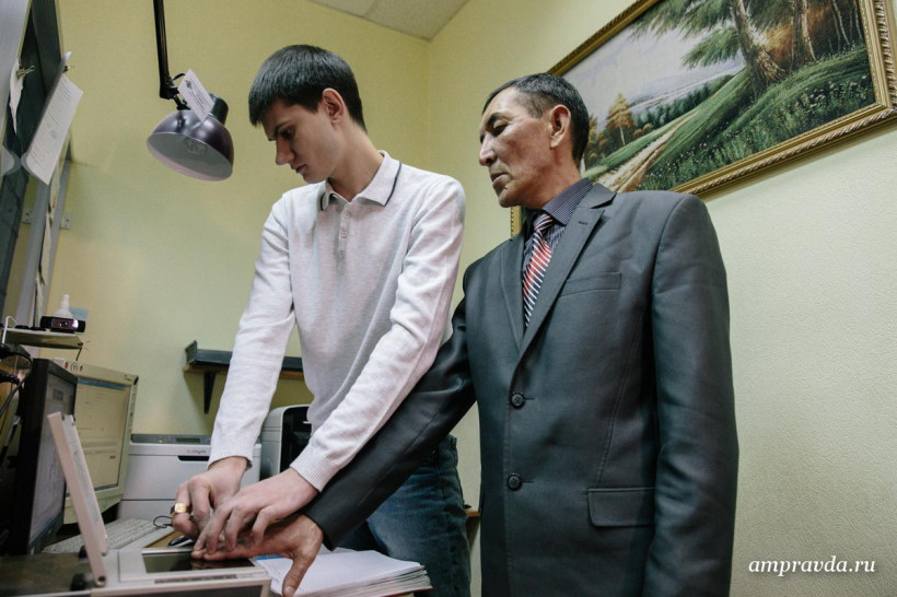 Прежде чем вручить патент, в амурском управлении УФМС Алманбета Мамытканова сфотографировали и сняли его отпечатки пальцев. Интересно, что это сделали с помощью современного электронного дактилоскопа: как раньше, пачкать руки краской не пришлось.