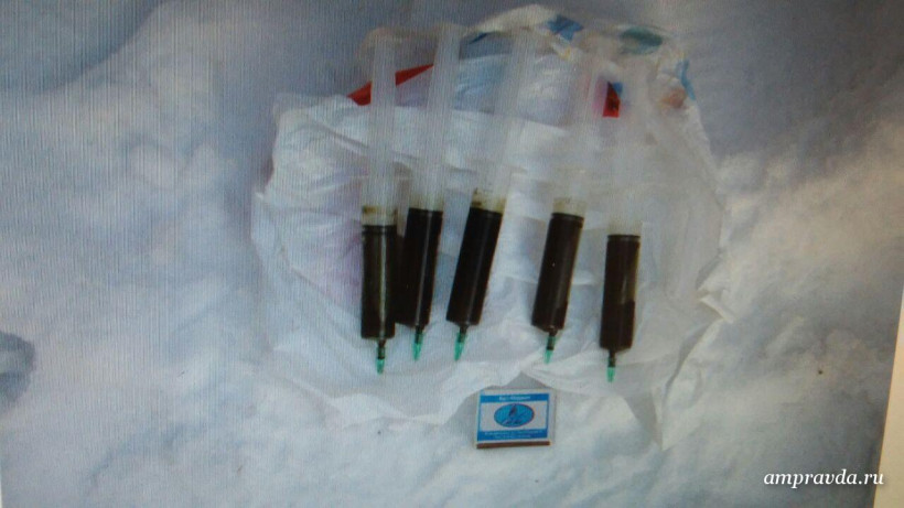 В надворных постройках одного из жителей Зеи были найдены пять шприцев с гашишным маслом. 32-летний мужчина неофициально трудился механиком на одном из транспортных предприятий города. Сейчас он заключен под стражу, ему грозит лишение свободы сроком до 20 лет, сообщает пресс-служба амурского управления ФСКН.