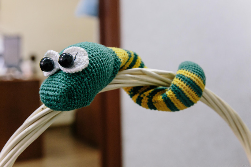 — При изготовлении амигуруми в основном все вяжется крючком и по кругу. Змея — это очень просто, из разряда самых обыкновенных игрушек, для начинающих. Она, по сути, является одной деталью. Не нужно отдельно вязать голову, руки, ноги, — рассказывает о плюсах Кирилл. — В интернете сейчас достаточно много сайтов, на которых приведены схемы того, как вязать маленькие игрушки, от и до.