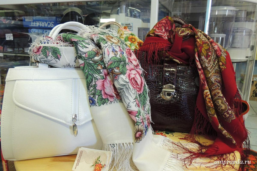 В тон платку и сумочка. Здесь этот незаменимый женский аксессуар представлен от мала до велика, причем всех цветов радуги. Деловые сумки, клатчи, торбочки, саквояжи — с аппликацией, перфорацией и без, из натуральной и искусственной кожи. Главная особенность ассортимента — российское производство. Сумки сюда поставляют 10 отечественных фабрик.