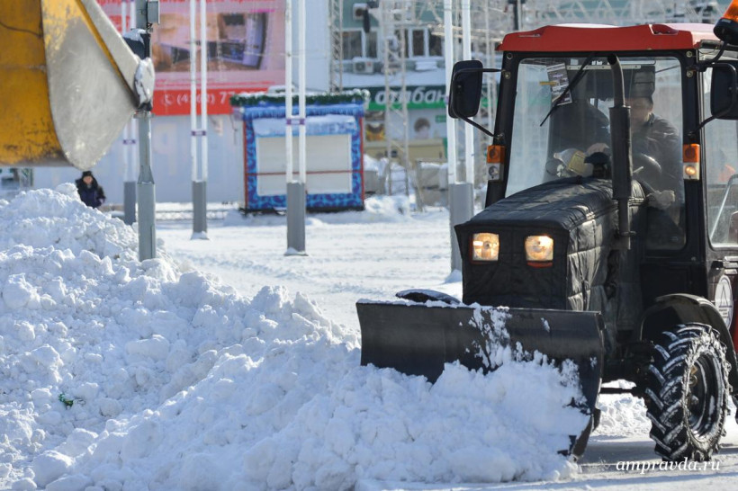 На данный момент на улицах Благовещенска задействованы 30 единиц снегоуборочной техники: девять тракторов, два грейдера, пять погрузчиков, семь КамАЗов, три самосвала и четыре подметально-уборочной машины. Шесть звеньев техники направлены на очистку от ледяного наката участков улиц Театральной от Магистральной до Кольцевой, Кольцевой от Театральной до Новотроицкого шоссе, Артиллерийской от Ленина до Горького, Загородной от Октябрьской до переулка Корейского. Три единицы спецтехники задействованы в уборке автобусных остановок и пешеходных переходов. Одно звено работает по магистральным улицам, второе — в микрорайоне, третье — по центральным районам. Сегодня в ночь снегоуборочную технику планируется направить на улицы микрорайонов.