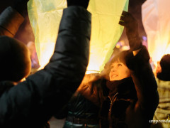 Вчера вечером, 26 февраля, ведущие телевизионной программы «Поедем, поедим!» вместе с жителями амурской столицы запустили в небо около 50 китайских фонариков. Поучаствовать в зрелищном шоу на набережную около городского парка пришли более полусотни благовещенцев. Этот флешмоб по замыслу организаторов символизирует дружбу народов России и Китая. Однако взмыть высоко в небо фонарям не удалось — поднявшись в воздух, горящие огоньки полетели в центр Благовещенска.