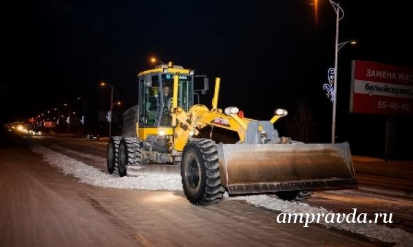 За ночь на благовещенские улицы высыпали 150 тонн противогололедного материала