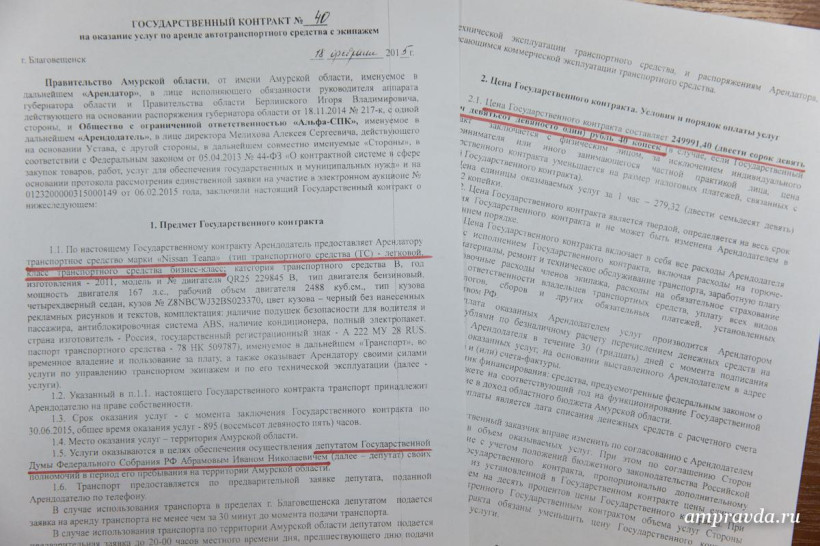 Каждый депутат Госдумы имеет право арендовать автомобиль для исполнения своих полномочий в период его пребывания на территории субъекта, интересы которого он представляет. И, судя по проходящим аукционам, амурские депутаты активно этим пользуются, выбирая автомобили по своему вкусу. Так, в июле 2014 года было проведено 2 аукциона, цена госконтракта на оказание транспортных услуг для депутата от ЛДПР Ивана Абрамова составила 499 тысяч 888 рублей, для коммуниста Дмитрия Новикова — 446 тысяч рублей. При этом согласно техзаданию депутат Абрамов для перемещения по Приамурью предпочел автомобиль бизнес-класса — черную Nissan Teana, а Новиков более скромный универсал Renault Duster.