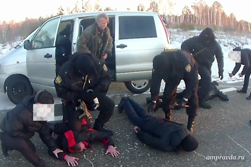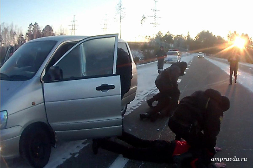 Задержание членов группы прошло в течение суток. Мужчин остановили на трассе Углегорск — Шимановск, когда они возвращались домой после очередной закупки героина. В машине вместе с соучастниками находились двое наркопотребителей. Все они, включая водителя, были в состоянии наркотического опьянения. При досмотре наркополицейские обнаружили у двоих из них при себе шприц с готовым к употреблению героином и «чек», которого хватило бы еще на 10—15 доз.