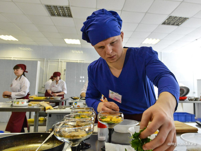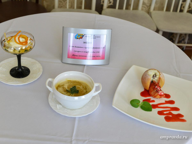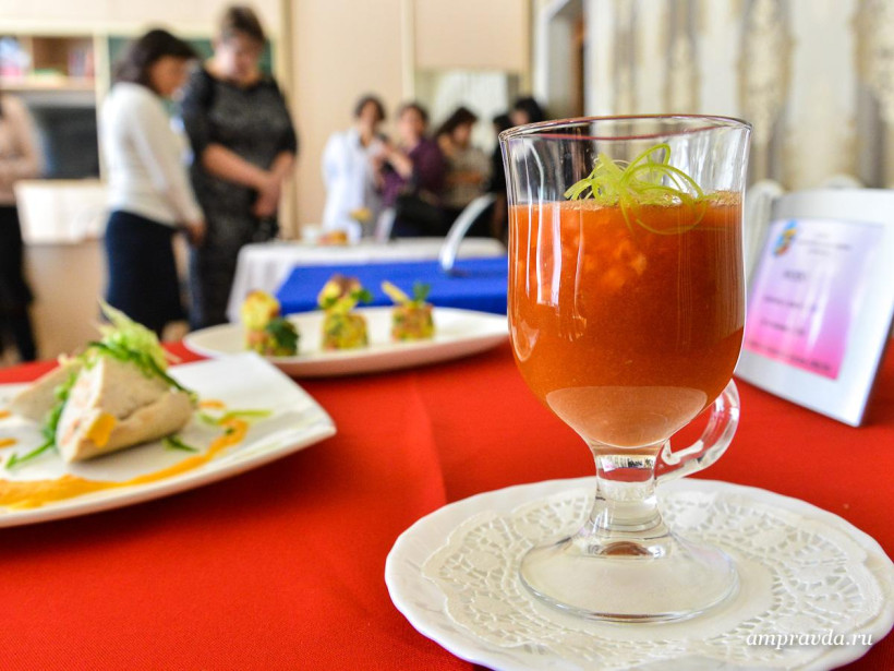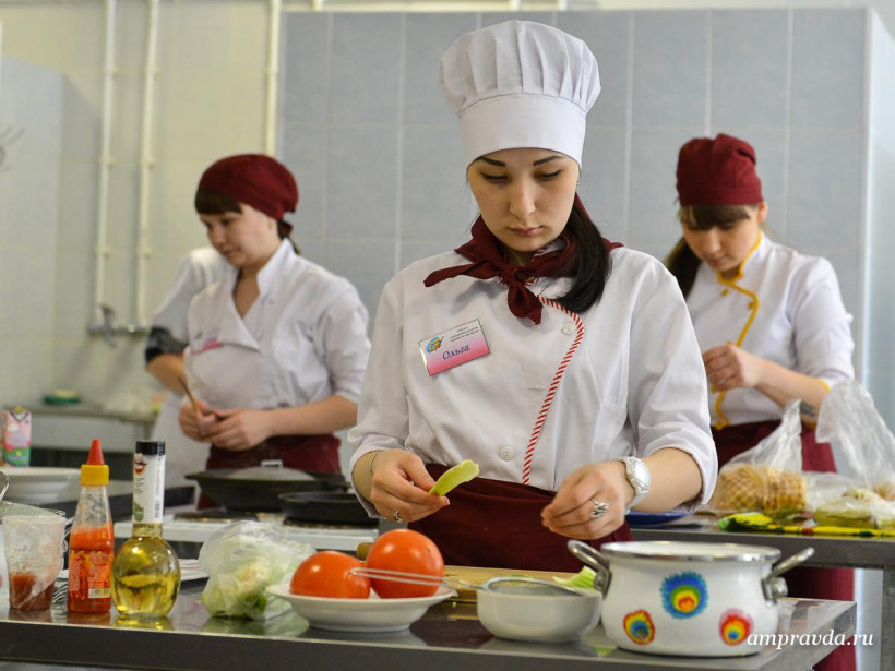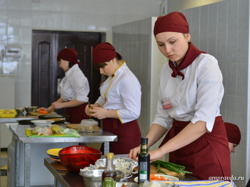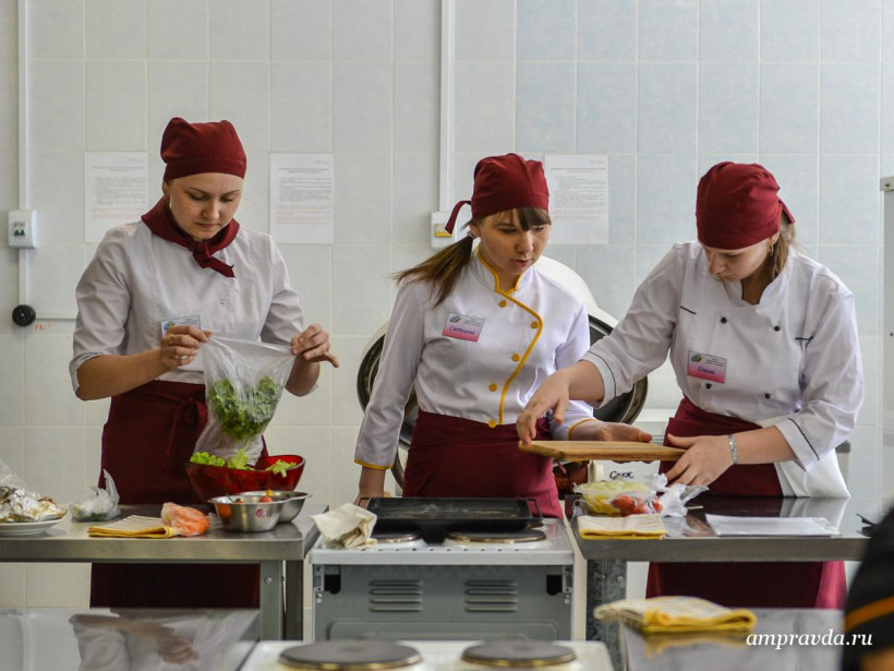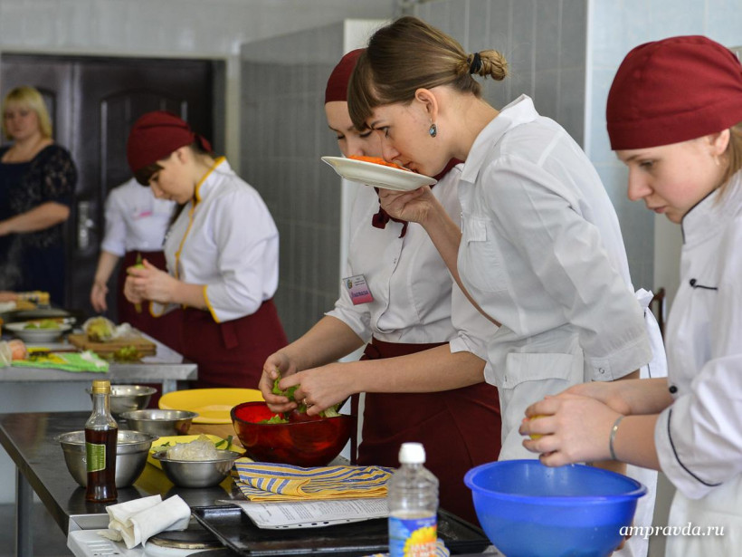 Учащиеся Амурского колледжа сервиса и торговли посоревновались в умении готовить блюда здорового питания. Их презентация и дегустация прошли сегодня в Благовещенске. Конкурс состоялся в рамках семинара «Здоровое питание как образ жизни». Свое мастерство демонстрировали 80 учащихся, которых разделили на три команды. Каждая представила меню, состоящее из закуски, основного блюда и десерта. Попробовать кулинарные шедевры смогли и потенциальные работодатели — на конкурс пригласили представителей местных кафе и ресторанов. По итогам состязания в качестве приза каждой команде вручили по торту.