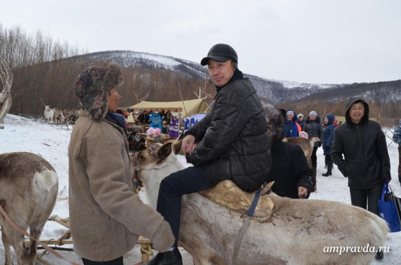 Эвенки Приамурья прокатили на оленях своих сородичей из Китая