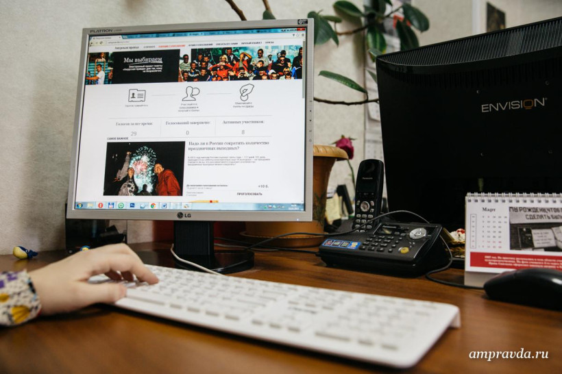 Таковы промежуточные итоги опроса. Принять участие в нем и высказать своем мнение можно еще в течение недели. На сайте также проходят голосования: «Вы ходите в кинотеатр?», «Поддерживаете ли вы идею об увеличении пенсионного возраста в России?», «Нужна ли канатная дорога через реку Амур между Благовещенском и Хэйхэ?» За участие зарегистрированные пользователи получают баллы, которые можно обменять на ценные призы и сувениры.