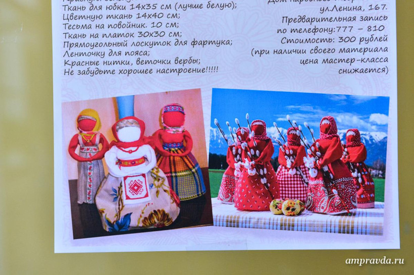 Музей лоскутной куклы, вошедший в программу по культурному туризму, открылся в начале марта в холле АОДНТ (бывший ДОРА) по адресу: ул. Ленина, 167. Он открыт с 9:00 до 18:00. Вход свободный. Здесь же для всех желающих проходят мастер-классы по созданию лоскутной куклы.