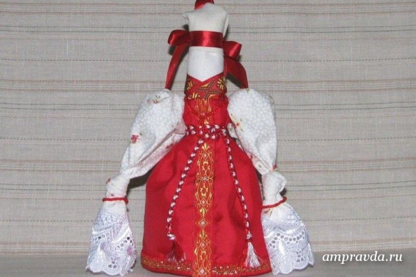 Самая яркая кукла, которая создавалась для того, чтобы прославить красоту женщины, которой она предназначалась. Иногда ее можно было передавать на свадьбу невесте. У нее были длинные рукава, которые подвязывались. Это символизировало удачное замужество.