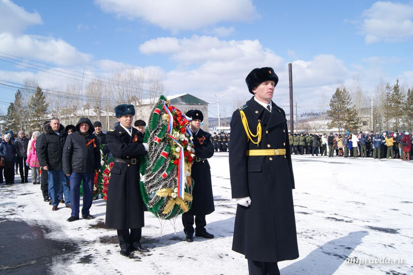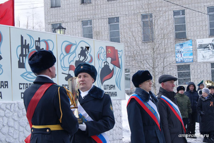 — Ровно неделю назад мы получили эстафету в Архаре, — рассказал председатель Совета ветеранов Пограничного управления ФСБ России по Амурской области Николай Корнеевич Науменко. — Прошли больше десяти населенных пунктов — 1 240 километров. Кроме передачи кубка, мы брали горсть земли с каждой братской могилы пограничников, которых немало на амурской земле, и закладывали в специальную капсулу, которая останется в нашем музее.