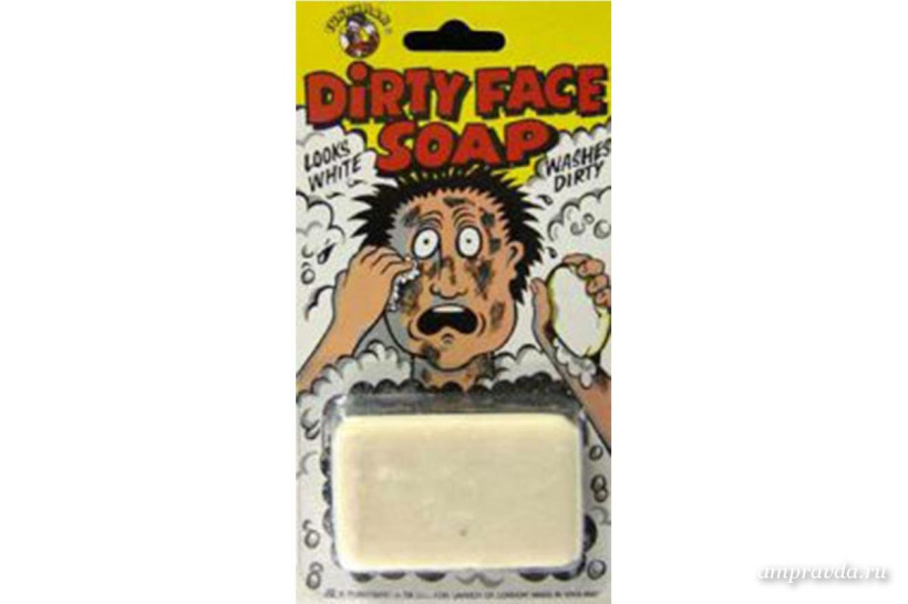 На вид это обычное туалетное мыло. Но стоит попробовать использовать его по назначению, и секрет раскроется! Когда с этим мылом моешь руки или лицо, они становятся не чистыми, а грязными. И чем больше люди стараются отмыться, тем чернее становятся. Этот простой розыгрыш можно проводить, пока не кончится кусочек.