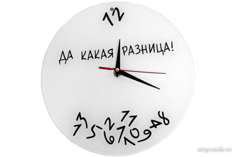 Настенные часы с обратным механизмом хода — прекрасный подарок на День смеха. Взглянув на эти часы, веселая улыбка всем и каждому обеспечена. Правда, чтобы вычислить время, придется очень постараться. Зато необычный аксессуар украсит и оживит любой интерьер.