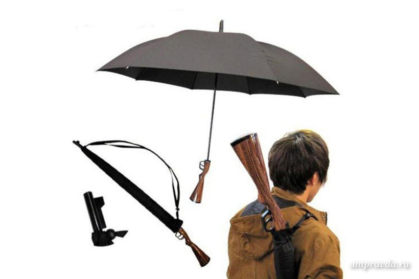 Хотите подарить полезный и в то же время оригинальный подарок мужчине? Зонт с ружейным прикладом и дулом на конце — то, что вам нужно! В дождь он защитит человека от воды, а в закрытом состоянии — от хулиганов и лишних знакомств. Разве кто пристанет к мужчине с ружьем за плечами?