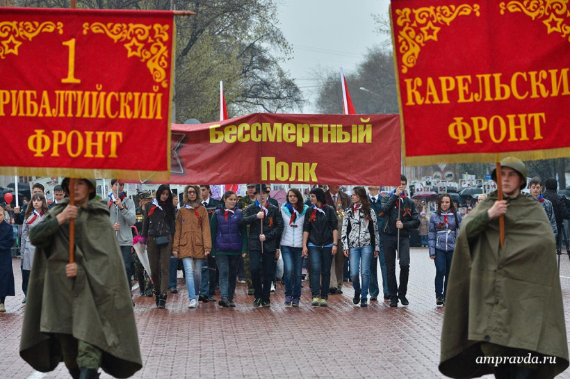 Почти десять тысяч амурчан примут участие в шествии «Бессмертного полка» в этом году. К акции, которая проводится в России в День Победы, присоединятся также Крым, Чукотка, Норвегия, Эстония, Ирландия и Америка. В юбилейный год в Москве впервые россияне пройдут с портретами своих ветеранов по Красной площади. Ранее шествие организовывали на Поклонной горе.