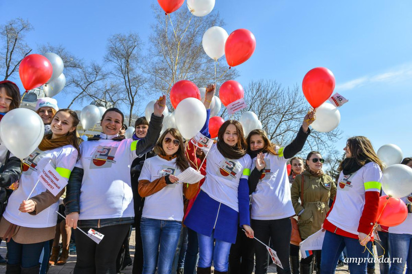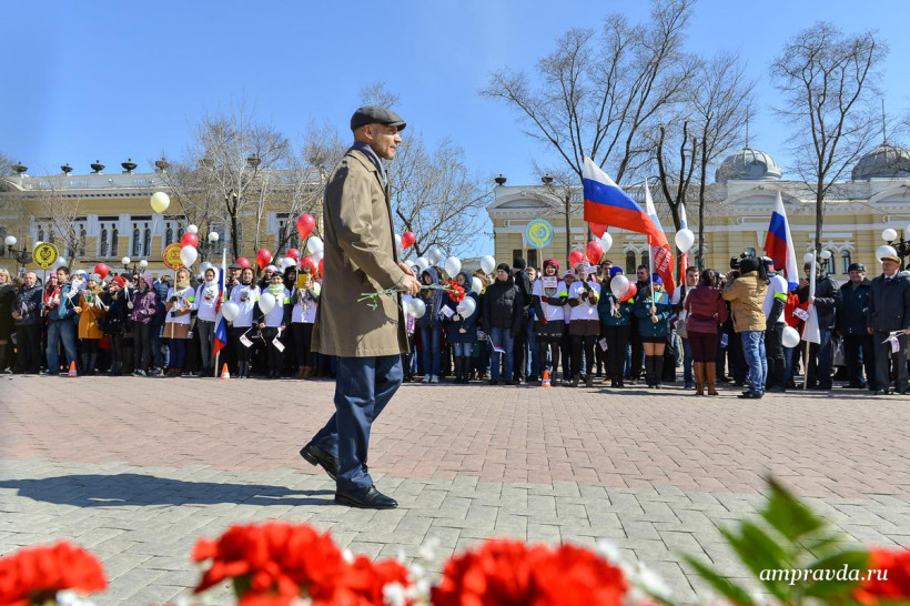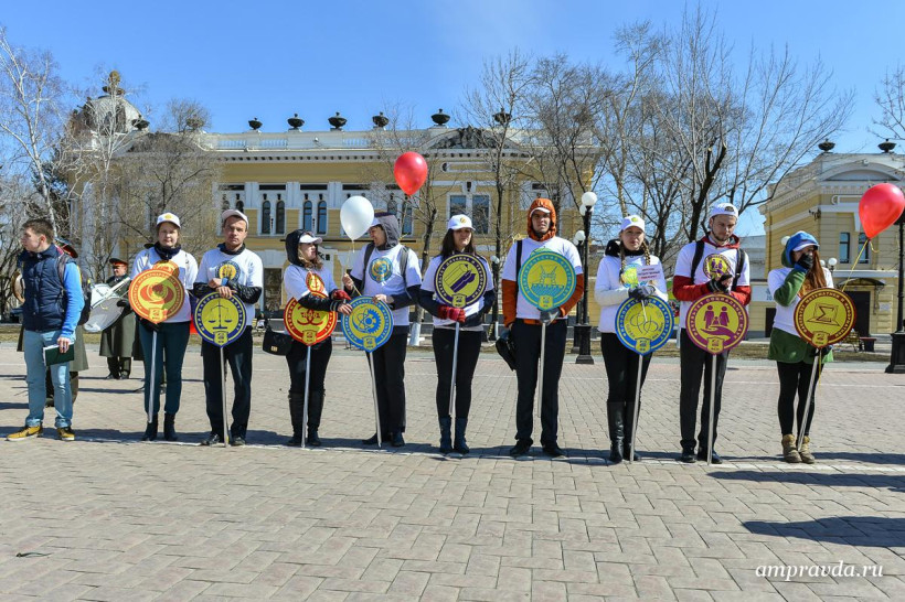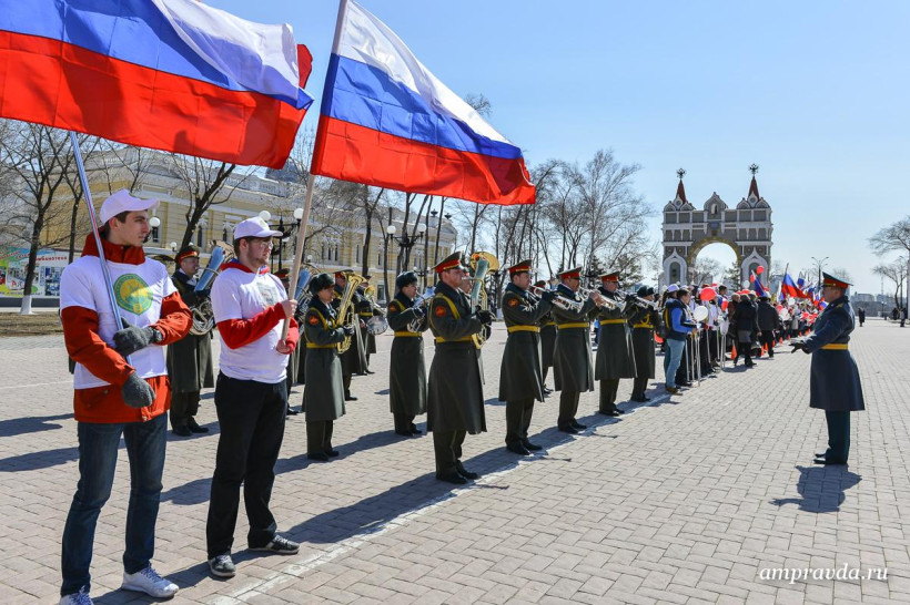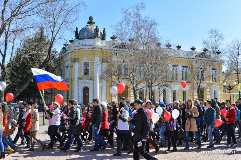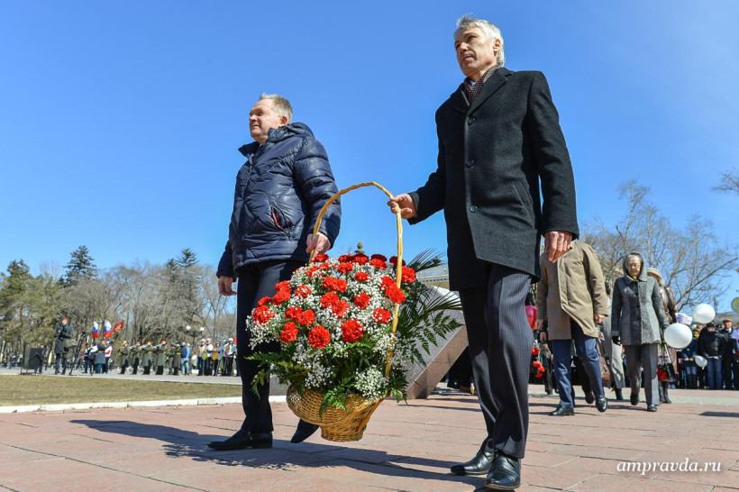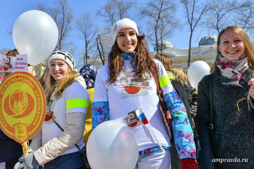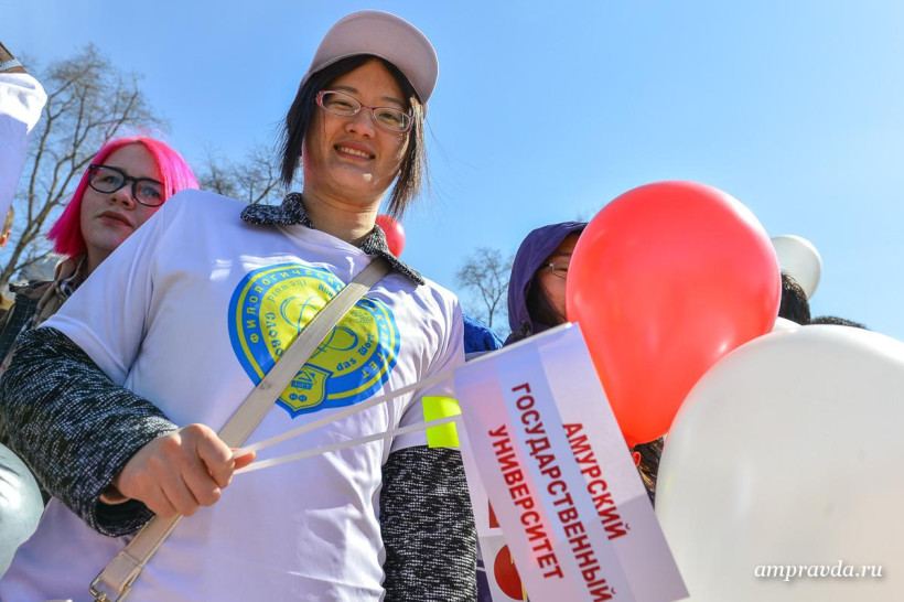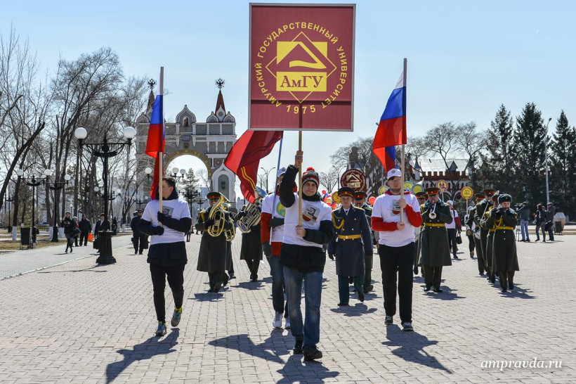 Сегодня, 3 апреля, студенты, преподаватели и сотрудники АмГУ возложили цветы к памятнику воинам-амурцам на площади Победы. Оттуда колонна двинулась по улице Ленина до Общественно-культурно центра. Там пройдут праздничный концерт и награждение старейших и лучших сотрудников вуза. Для студентов АмГУ торжество продлится и дальше — на концертной площадке Grand Arena ТРЦ «Острова».