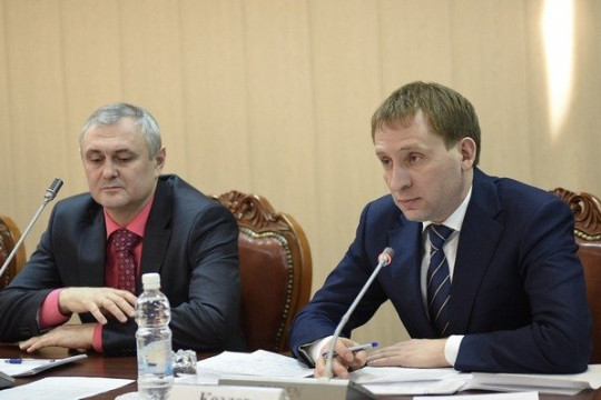На стройке Восточного Дмитрия Рогозина сопровождает исполняющий обязанности губернатора Приамурья Александр Козлов.