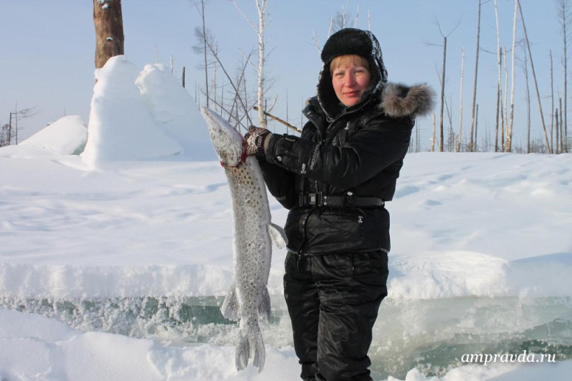 Говорит, такое на первый взгляд неженское хобби помогает ей отвлечься от напряженных трудовых будней в хирургическом отделении ЦРБ. По словам Юлии, зимняя рыбалка на Бурейском водохранилище выглядит так: на машине из Завитинска супруги выезжают ночью, к рассвету добираются до места, делают лунки, ставят «поставушки», а днем уже рыбачат.