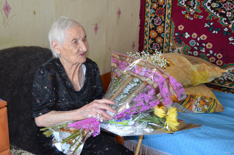 Представителей отдела ЗАГС и управления пенсионного фонда Александра Яковлевна встретила с улыбкой. Она сама передвигается по дому, родные говорят, что самостоятельно может приготовить себе суп. Секрет ее долголетия – в постоянном труде и большой семье. В эти дни небольшая квартира бабушки утопает в цветах, которые несут родные и близкие.