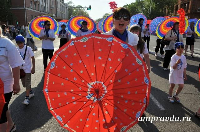 В Благовещенске в этом году праздничное шествие в День города, 6 июня, пройдет в форме литературного карнавала. Участникам предстоит создать свой индивидуальный стиль с помощью костюмов, логотипов, листовок и других подручных материалов. При этом должна быть соблюдена литературная тематика. Можно также использовать одно или два транспортных средства.