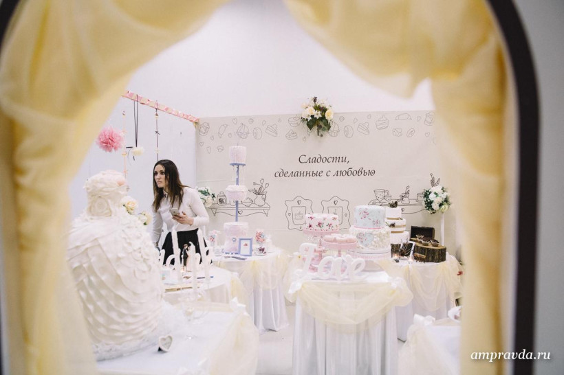 11—12 апреля на Grand Arena благовещенского ТРЦ «Острова» проходит выставка свадебных товаров и услуг. На нее вместе со своей продукцией собрались декораторы, фотографы, кондитеры, ведущие свадеб, представители индустрии красоты, флористы и многие другие, кто имеет отношение к свадебным торжествам. В специальной зоне «Hand-made» профессионалы дали гостям мастер-классы по оформлению свадебных аксессуаров. Благовещенские невесты смогли испробовать на себе новинку свадебной моды, сделав на теле узорную роспись- мехенди). Также будущие молодожены пофотографировались в «Чудо-шаре». Как проходила выставка, увидел фотокорреспондент АП Сергей Лазовский.