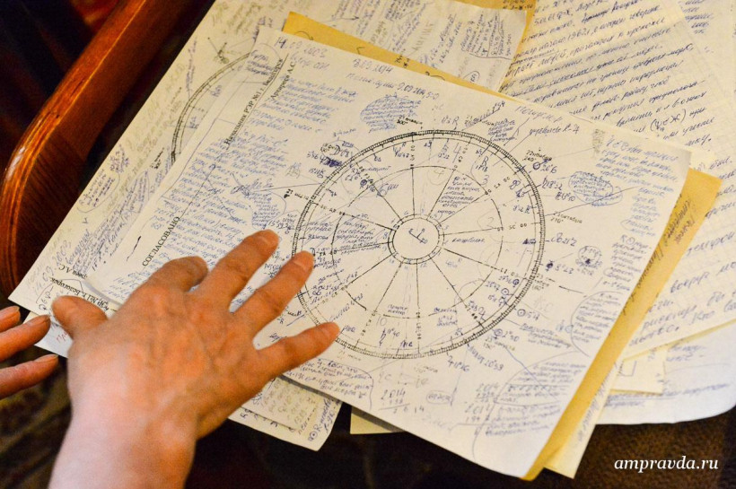 Рассказывая о том, как она пыталась приоткрыть тайну влияния звезд на судьбу пропавшей Верочки Захаровой из Белогорска, женщина намеренно не называла ее имени и фамилии. Разложив на диване кипу бумаг, исписанных мелким почерком, она вытащила большой лист, в центре которого была нарисована большая окружность, перечеркнутая прямыми линиями.