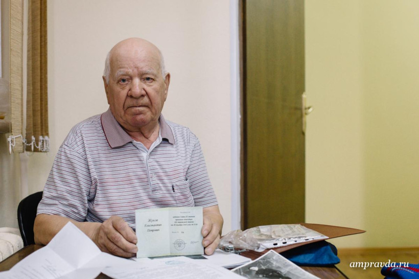 Чуть больше года понадобилось благовещенскому пенсионеру Юрию Жукову, чтобы добиться получения заслуженной награды своего отца Константина Жукова, погибшего на фронте в годы Великой Отечественной войны. Боец Красной армии был представлен к ордену Славы третьей степени посмертно 28 декабря 1943 года. Лишь спустя 72 года со дня гибели воина сын смог получить орденскую книжку.