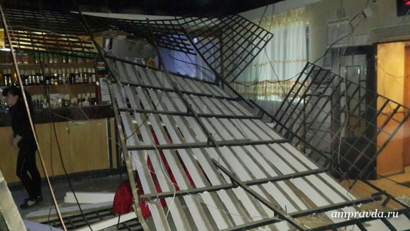 В кафе Зеи потолок рухнул на танцующих посетителей (видео)