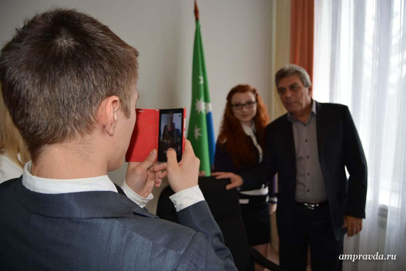 В День самоуправления школьники Белогорска сделали селфи с мэром и сели в его кресло