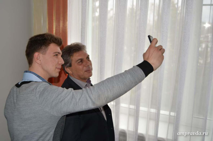 Получив разрешение, школьники осмотрели кабинет мэра и примерили кресло главы города. Но больше всего ребята были довольны личным знакомством со Станиславом Мелюковым. К нему выстроилась очередь из желающих сфотографироваться, также юные посетители мэра спрашивали главу города о ремонте дорог Белогорска, развитии горпарка и строительстве школы.