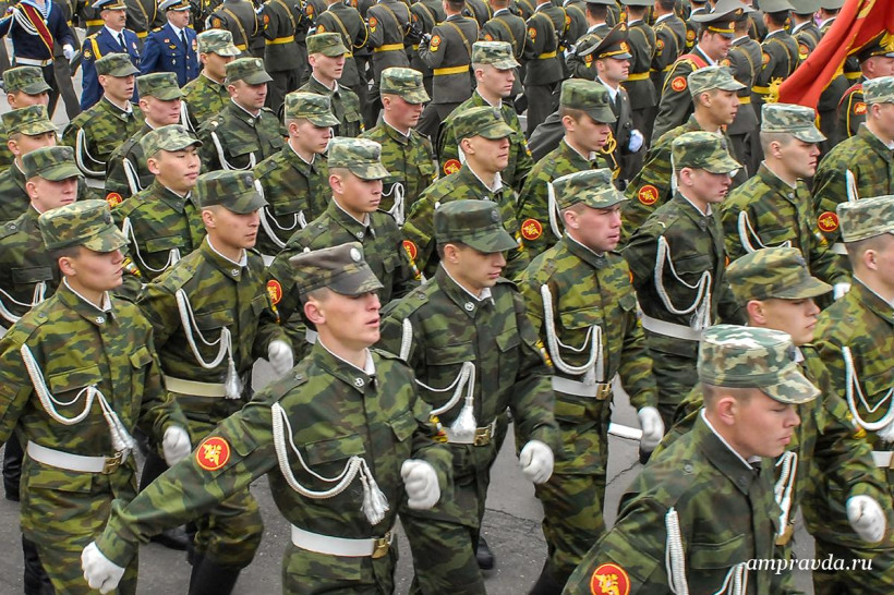 В честь 70-летия Великой Победы в парадах и праздничных шествиях в городах Приамурья примет участие рекордное количество военнослужащих. Так, в городе Белогорске в параде Победы будут задействованы 1 186 военнослужащих соединений и воинских частей Белогорского гарнизона, в городе Благовещенске в торжественном шествии примут участие 1 070 курсантов Дальневосточного высшего военного командного училища, в городе Свободном — 150 военнослужащих железнодорожного соединения ВВО.