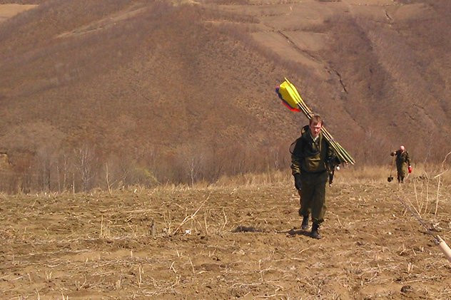 — Был обследован также и район горы Хошао, где в 2012 году местный житель обнаружил останки четырех советских военнослужащих, — рассказал АП руководитель экспедиции и общественно-государственного проекта «Историческая память в Приамурье» Сергей Орлов. — В том же районе поисковики нашли фрагменты человеческих костей, стреляные гильзы, элементы снаряжения и даже неразорвавшуюся мину советского миномета. А на южном склоне этой же горы группа заметила следы «черных копателей», которые вскрыли захоронение японского военнослужащего.
