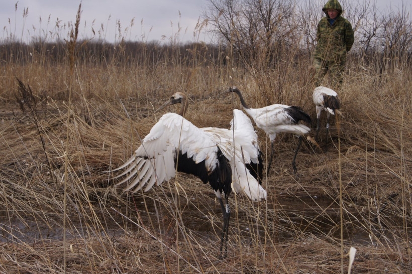Семь молодых журавлей были выпущены накануне в Хинганском заповеднике. Еще двое птенцов даурских журавлей появились на свет в инкубаторе станции реинтродукции редких видов птиц.