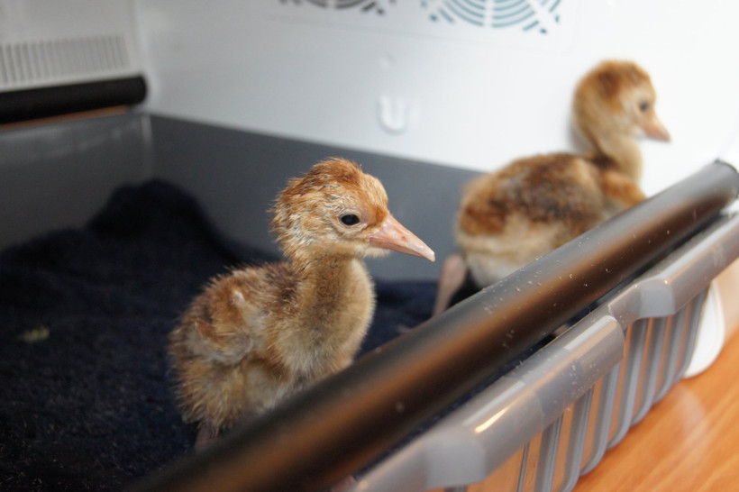 Кроме того, 22 и 23 апреля в инкубаторе успешно вылупились два птенца из яиц пары даурских журавлей. Яйца были взяты от родителей для искусственного инкубирования. Теперь о них будут заботиться сотрудники станции, летом вместе с другими журавлятами их перевезут на летний стационар.
