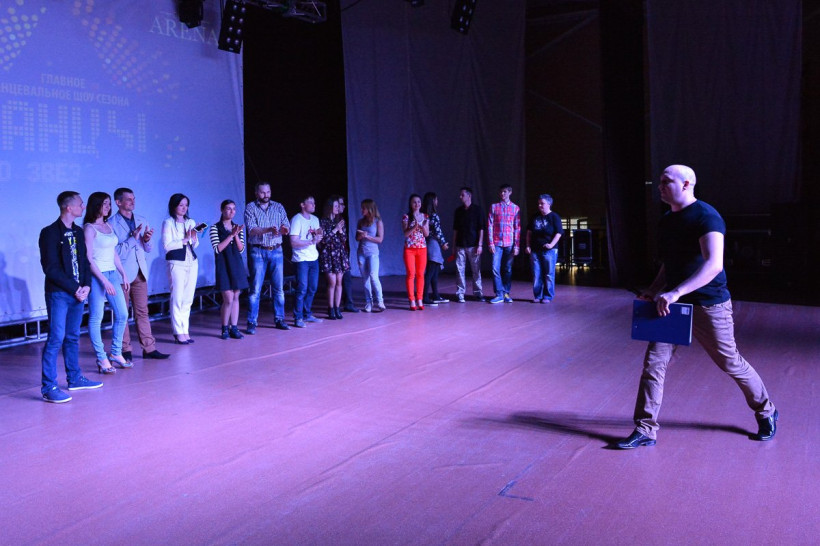 Первое задание оказалось не очень страшным — выйти на сцену и провести жеребьевку партнеров — профессиональных танцоров. В итоге мне достался самый симпатичный (но очень серьезный) танцор — Николай Тимохин. Посмотрев на меня, молодой человек попытался скрыть тяжелый вздох, немного вымученно улыбнулся и тихо произнес: «Будем работать… Много работать». И предложил на первое выступление, которое состоится в «Островах» уже 11 мая и будет посвящено 70-летию со дня Победы, исполнить… Хотя нет. Рассказывать заранее, что придумал серьезный Николай, нельзя. Кстати, мое предложение, чтобы враги меня убили в самом начале выступления, Николай Тимохин категорически отверг. Так что если вы не боитесь, то 11 мая обязательно приходите в «Острова»… Хотя бы поржать…